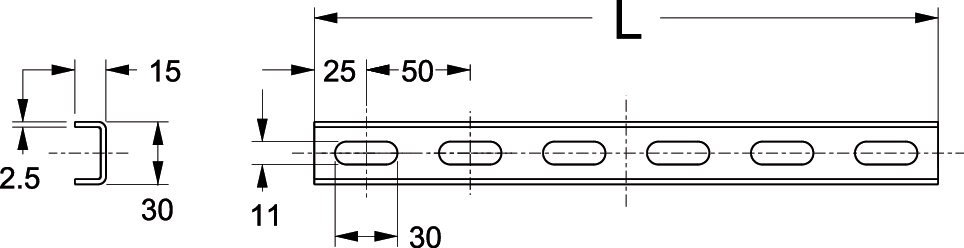 TEKNOMEGA SRL - TKGSTF2515 PROFILO EL.ZINCATO L500MM PER GANASCIA - STF2515