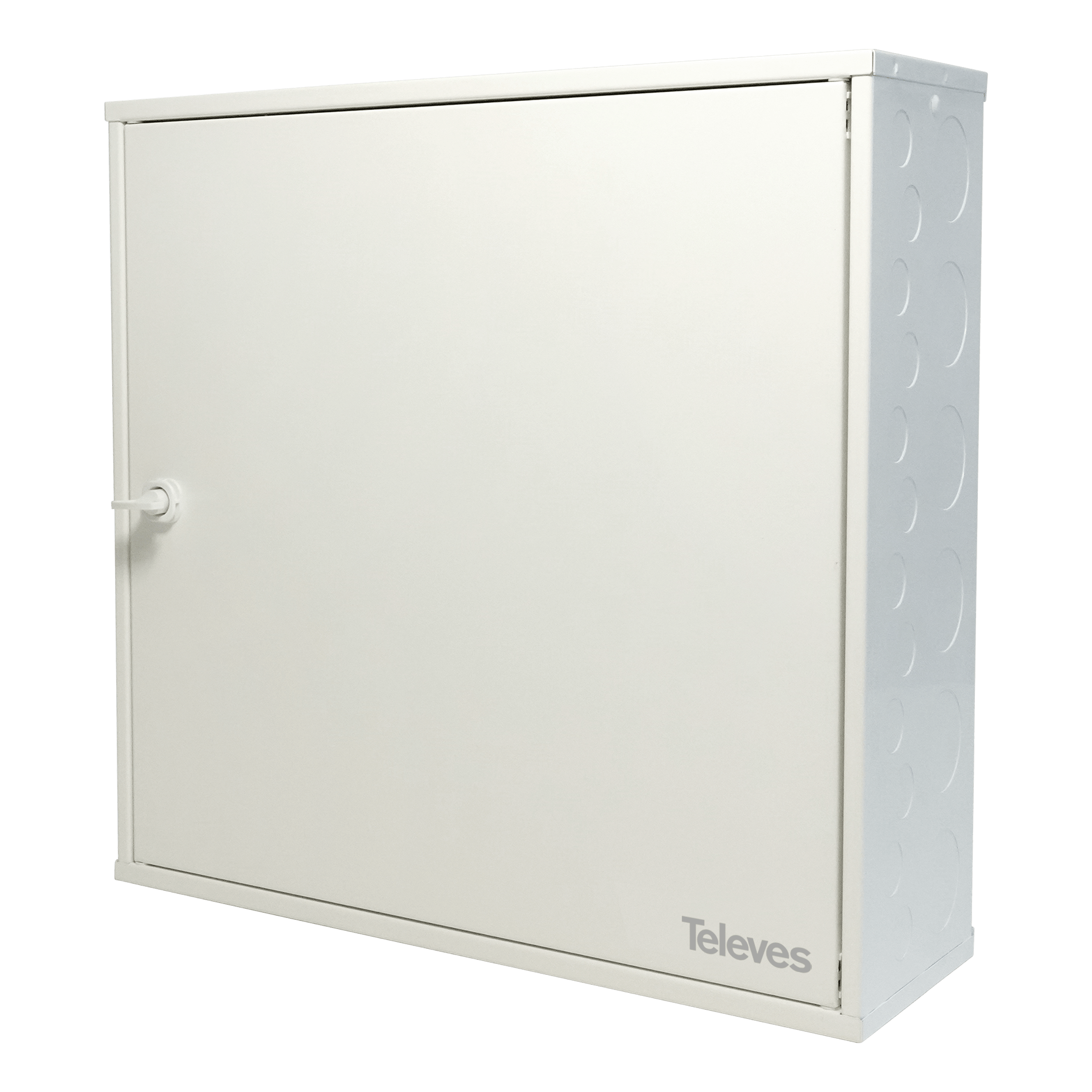 Custodia per splitter Cavo coassiale, dati, telefonia e fibra ottica. Progettato principalmente per l'uso nelle reti di telecomunicazione all'interno degli edifici. Il suo punto d'installazione abituale è presso le pareti divisorie di ogni piano, sebbenepossa essere utilizzato anche come registro di permutazione in qualsiasi tipo d'installazione. Solitamente ospiterà le diverse tecnologie associate alle telecomunicazioni (dalle apparecchiature al cablaggio), consentendo così di essere un punto di misurazione e test per la rete. . Robusto: realizzato in acciaio . Sicurezza: serratura standard triangolare con chiave inclusa. Diverse opzioni di montaggio: a parete o a superficie. Può essere montato con malta, essendo tenuto in posizione dai tubi che vi accedono. Ingressi premarcati per una facile apertura: 24 ingressi per tubo da 51 mm e 48 ingressi per tubo da 26 mm equamente distribuiti sui 4 lati per una maggiore versatilità. Con accesso da tutti e 4 i lati. Pannello in MDF per facilitare il fissaggiodegli elementi (dimensioni: 370x370x10mm). Dimensioni: 450x450x154mm. Porta incernierata con apertura intercambiabile (destra o sinistra), che può anche essere rimossa per facilitare le operazioni all' interno . Include un collegamento a terra e 2 dadi esagonali M4. Compatibilità con i nostri armadietti per splitter e di permutazione, che verrebbero installati all'interno di questo prodotto. Compatibilità con i nostri contenitori terminali. Laccato bianco (RAL 9016).