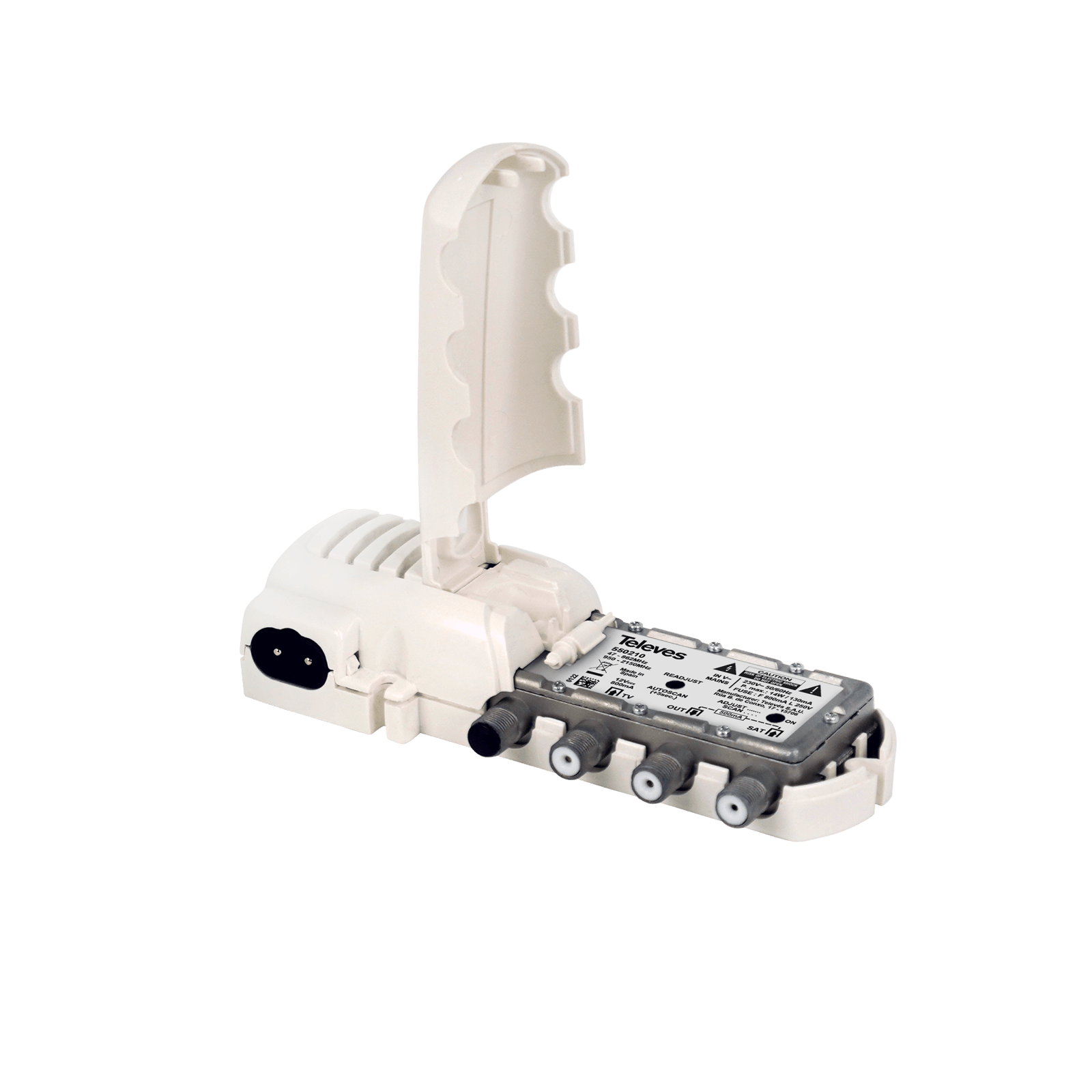 Alimentatore ''F'' 12V - 800mA, 1 uscita, con Bluetooth® (per SmartKom). Alimentatore d'interno a 12V (800mA) inserito nell'impianto per alimentare un amplificatore intelligente SmartKom. Il dispositivo invia alimentazione attraverso il cavo coassiale dell'ingresso TV e consente il passaggio del segnale in uscita. Include anche un secondo ingresso per la miscelazione del segnale satellitare, per trasmettere una distribuzione televisiva completa con un unico cavo coassiale, collegato al connettore di uscita dell'alimentatore. Questo alimentatore è stato progettato appositamente per l'installazione con un amplificatore intelligente SmartKom, in quanto incorpora un'antenna Bluetooth® che consente la programmazione wireless dello SmartKom utilizzando uno smartphone o un tablet, con l'applicazione ASuite. L'alimentatore è inoltre dotato di un pulsante che esegue la funzione di autoprogrammazione dello SmartKom, che consente all'amplificatore di programmarsi e regolarsi da solo. . Antenna Bluetooth® per la configurazione wireless dell'amplificatore SmartKom tramite smartphone o tablet (ASuite App). Pulsante di autoprogrammazione incorporato, per cui non è necessario recarsi fisicamente allo SmartKom per eseguirla. Indicatore LED che visualizza lo stato di regolazione e di programmazione. Produzione completamente automatizzata e sottoposta a rigorosi controlli di qualità. Alimentatore switching ad alte prestazioni: risparmio di consumo fino a 40%. Disegno discreto e dimensioni ridotte. Connettori ''F''. Avvitabile a parete.