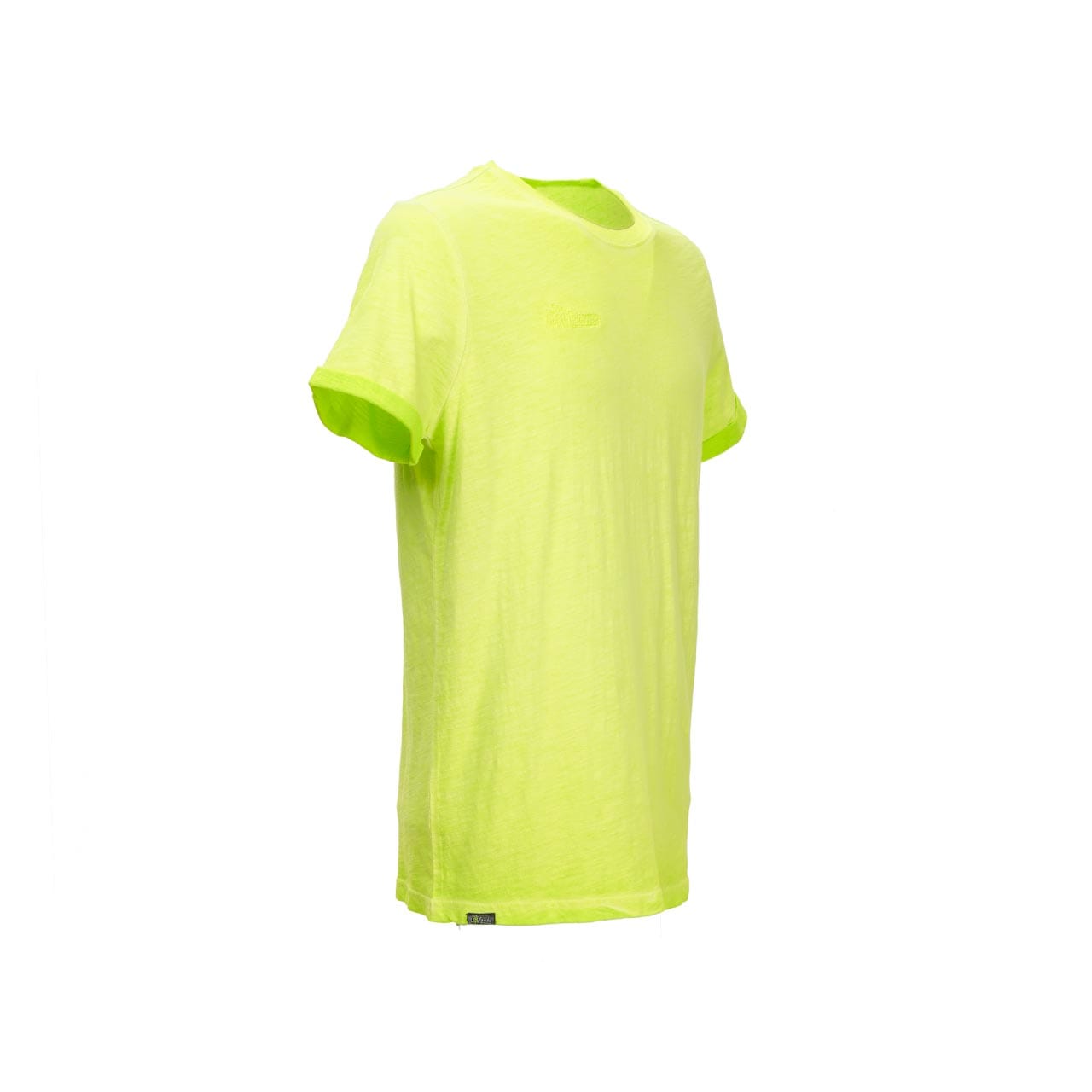 T-Shirt manica corta in 100% cotone fiammato in colore Yellow Fluo. Tessuto di alta qualità in cotone con filato "slub cotton” (cotone fiammato) ottenuto con fili di spessore variabile che rendono la T-Shirt estremamente confortevole, traspirante e delicata sulla pelle. Slim-Fit. Girocollo a coste. Logo ricamato tono su tono.