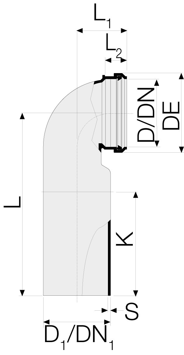 VALSIR - VALVS0364001 CURVA WC VASO SOSPESO VERT. HDPE D.90 - VS0364001