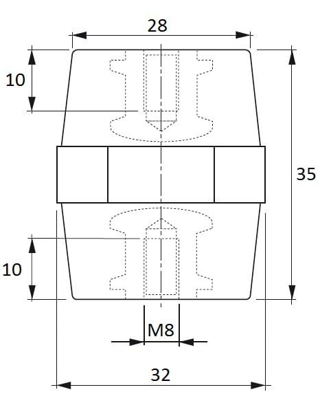 ISOLATORI E PORTASBARRE Altezza: 35 Tipo: Esagonale Inserto: M8