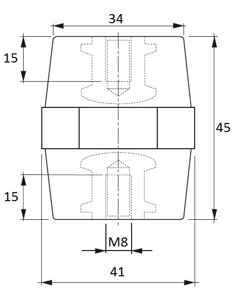 ISOLATORI E PORTASBARRE Altezza: 45 Tipo: Ottagonale Inserto: M8