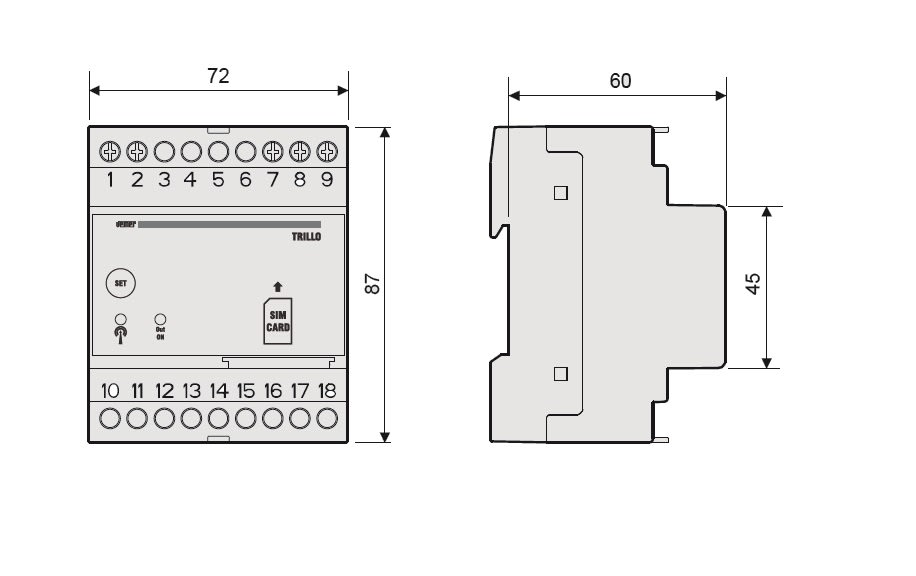 Interfacce basate su tecnologia gsm che consentono il comando a distanza di utenze elettriche, tramite l’invio di sms o squilli telefonici. La versione Trillo-B, alimentato in bassa tensione, dispone di una batteria tampone che consente allo strumento difunzionare anche in mancanza di alimentazione.
