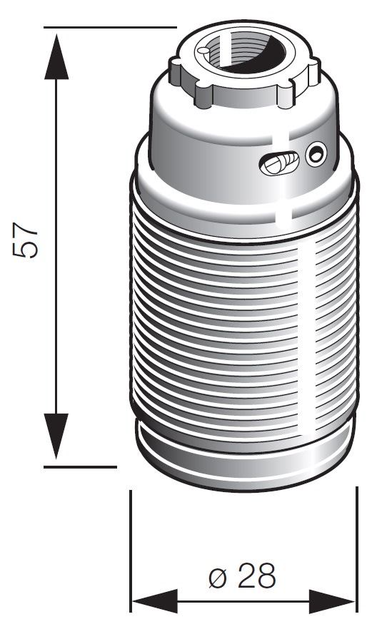 Portalampade E14, raccordo M10x1 con vite di blocco e morsetto di terra sul cappuccio, cappuccio e camicia filettata, acciaio zincato lucido colore ottone