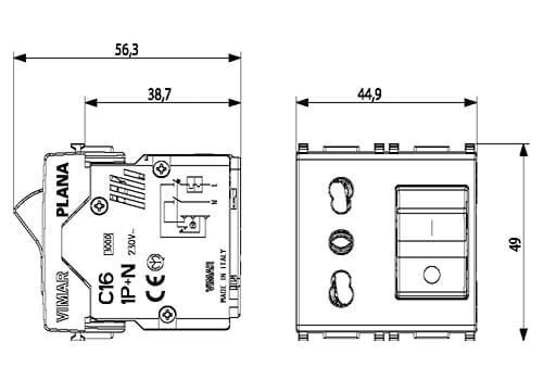 Bpresa SICURY 2P+T 16 A standard italiano tipo P17/11, interbloccata con interruttore automatico magnetotermico 1P+N C 16, 230 V~ 50 Hz, p.i. 3000 A, Silver - 2 moduli