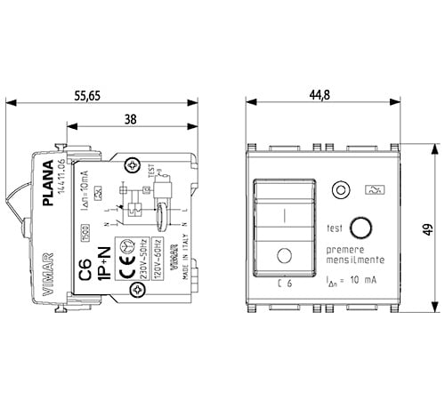 VIMAR SPA - VIW14411.06.SL INTERRUTTORE MTDIFF. 1P+N C6 10MA SILVER - 14411.06.SL