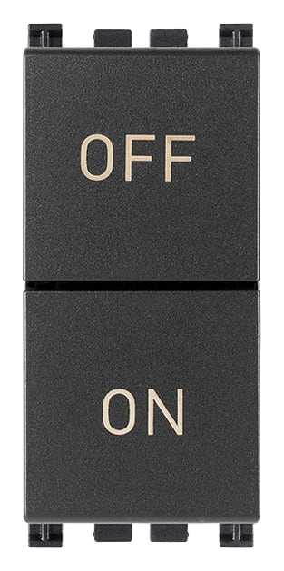 Due pulsanti indipendenti 1P NO + 1P NC 10 A 250 V~, simboli ON e OFF, grigio