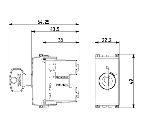 VIMAR SPA - VIW19083.CU INTERR. 2P 16(3)A +CHIAVE UNIF. GRIGIO - 19083.CU