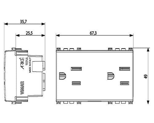 VIMAR SPA - VIW19246 DUE PRESE 2P+T 15A USA+SASO GRIGIO - 19246