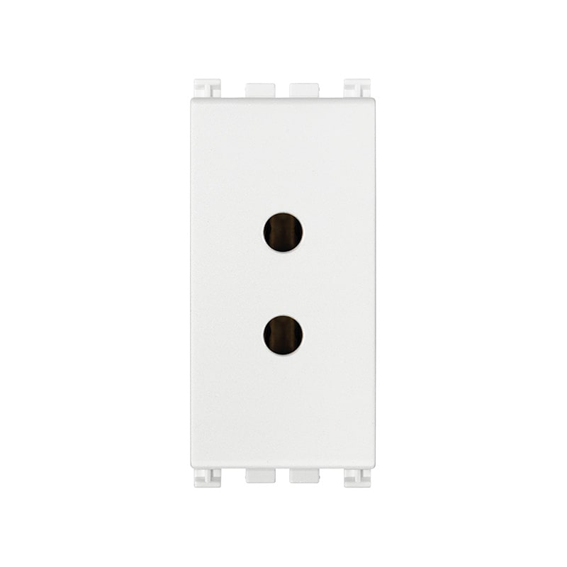 Presa 2P 6 A 24 V (SELV) per spina 01620 (spinotti ø 3 mm interasse 12,4 mm), bianco. Per circuiti ausiliari.