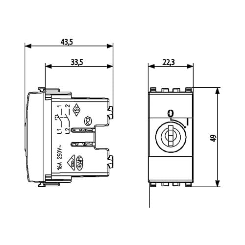 VIMAR SPA - VIW20086.CU.B PULSANTE 2P NO 16A + CHIAVE UNIF. BIANCO - 20086.CU.B