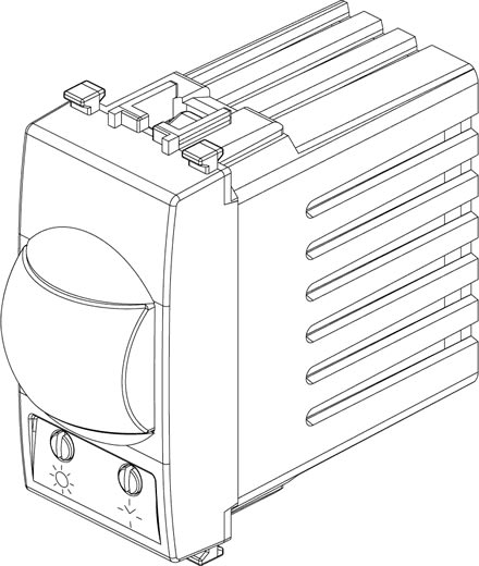 Interruttore con sensore di presenza ad infrarossi per accensione luci, soglia del sensore crepuscolare e ciclo di temporizzazione regolabili, uscita a relè NO 6 A 230 V~, alimentazione 230 V~ 50-60 Hz, Next
