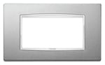 Placca Classic 4 moduli, metallo, argento matt, cornice cromata