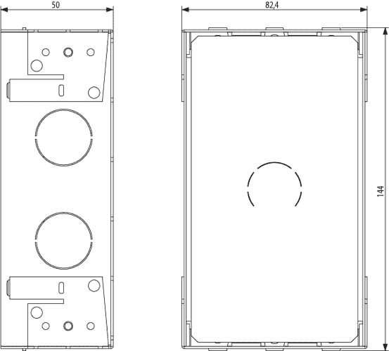 Scatola da incasso antristrappo, acciaio, 1 modulo. Dimensioni: 82,4x144x50 mm.
