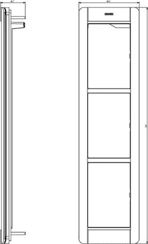 Supporto e placca 3 moduli Pixel, bianco. Dimensioni 99,5x391 mm.