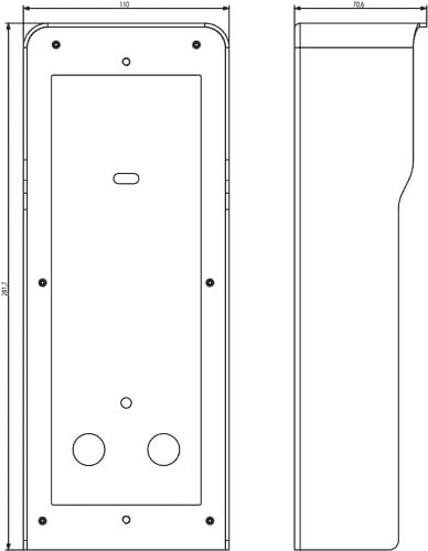 Scatola parete con cornice parapioggia incorporata 2 moduli Pixel, bianco. Dimensioni 110x281,7x70,6 mm.
