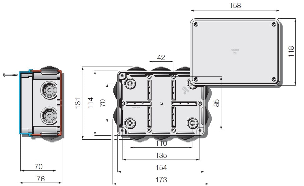 VIMAR SPA - VIWV55106 SCATOLA DERIVAZIONE IP55 150X110X70MM - V55106