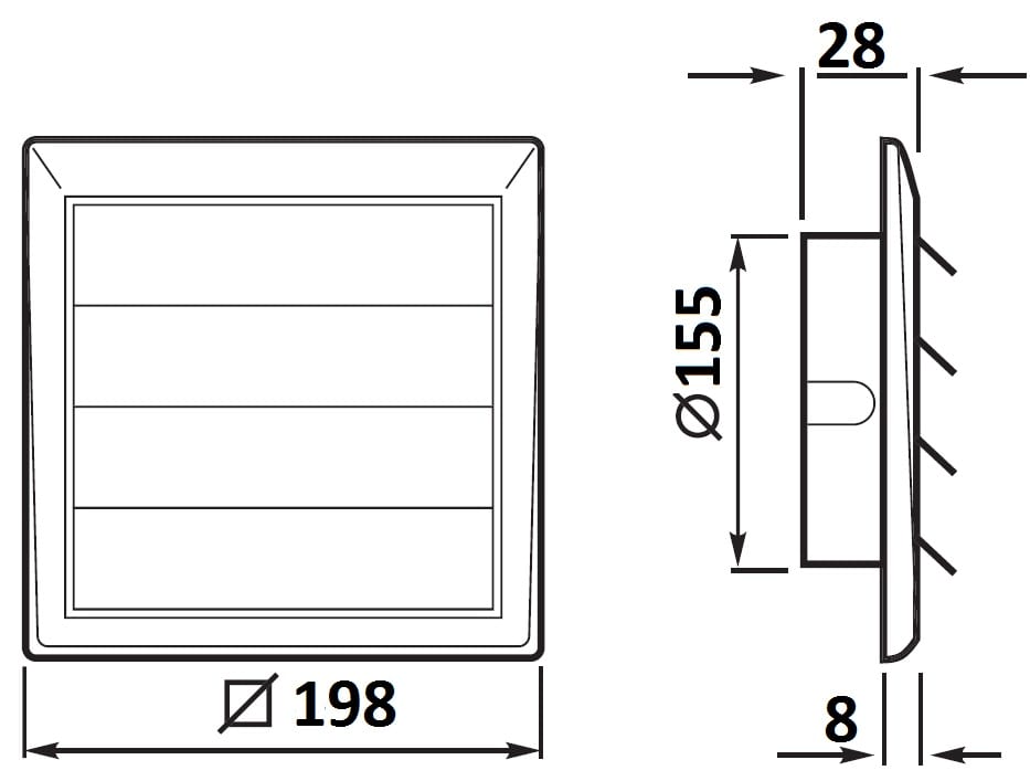 GRIGLIE A GRAVITÀ - Da installare a parete. - Impedisce il rientro di aria e di oggetti. - Fabbricata interamente in resina termoplastica antiurto resistente agli UV. - Le alette sono sagomate in modo da evitare che restino bloccate.