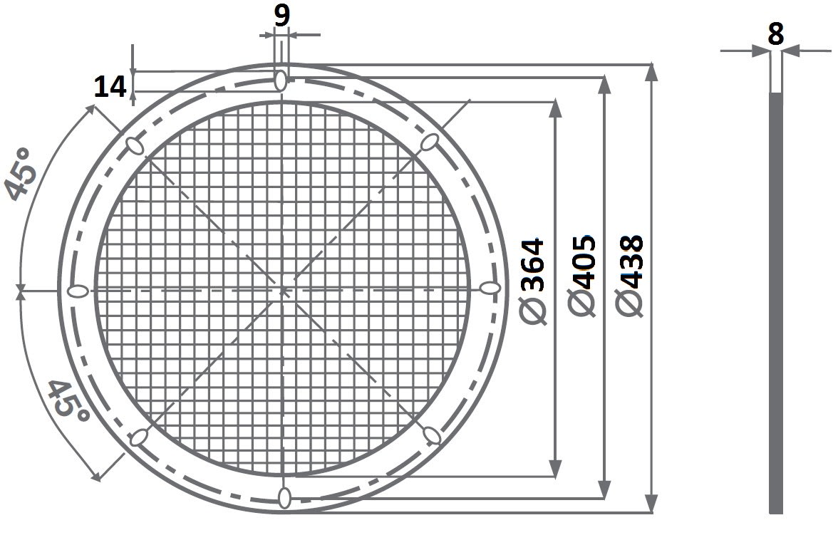 Da applicare al prodotto sul lato di aspirazione per proteggere le parti in movimento nel caso l’apparecchio sia installato in posizione accessibile (NORMA EN 294)