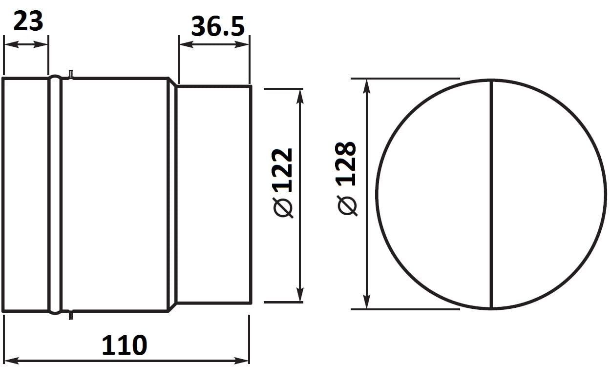 VALVOLA DI NON RITORNO- Da montare direttamente nei condotti di ventilazione o sull’uscita del prodotto.- Composta da un cilindro in acciaio zincato.- La chiusura e la tenuta sono garantite da una guarnizione di tenuta in neoprene.