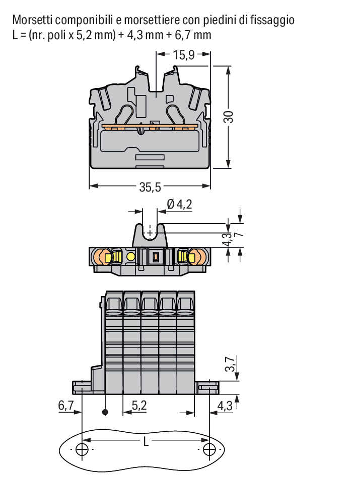 WAGO ITALIA SRL - WAG2052-301 MOR. PASSANTE MINIATURIZZATO PER 2 CONDU - 2052-301