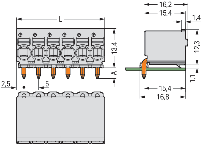 WAGO ITALIA SRL - WAG2092-1372 1 COND. CONNETTORE FEMMINA THT, PULSANTE - 2092-1372