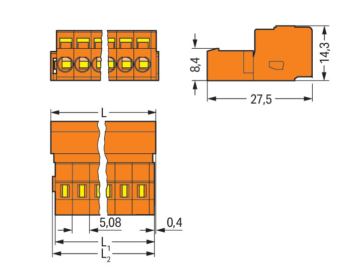 Rastermaß der Kontakte - 5.08 mm