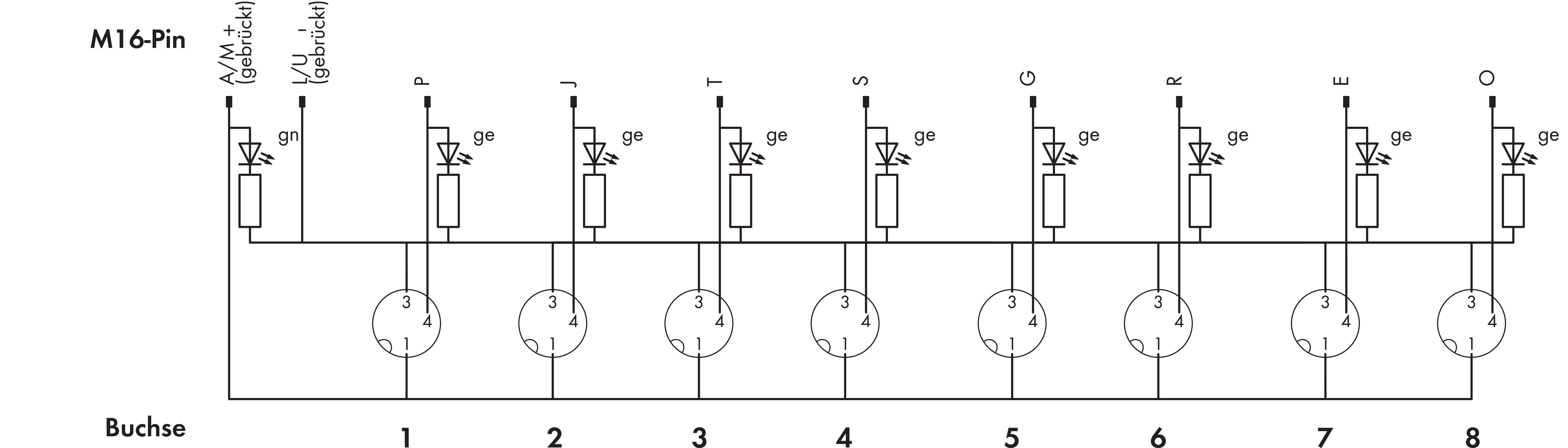 Ausführung der Abgänge für Sensor-/Aktorleitungen - M8
