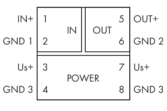 Galvanische Trennung zwischen Eingang und Ausgang: