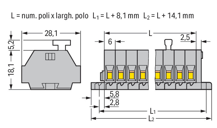 WAGO ITALIA SRL - WAG870-596/281-673 MORSETTO PER COMPONENTE A TRE PIANI, GRI - 870-596/281-673