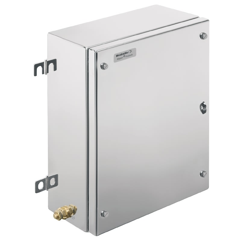 Custodia in metallo adatta all'uso in zone a rischio di esplosione. I fori per il montaggio sono posti all'esterno dell'area di tenuta stagna. Il montaggio a muro può essere realizzato utilizzando fori di montaggio o piedini di montaggio.