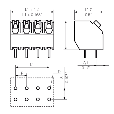 Winkel Leiterplatte/Leiteranschluss: