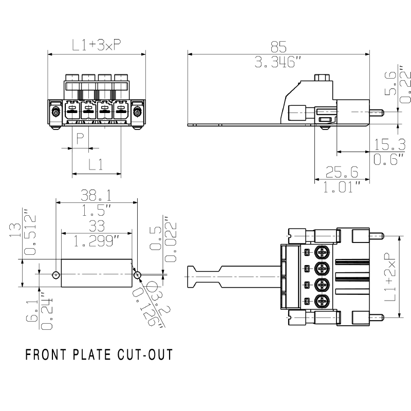 Rastermaß der Kontakte - 7.62 mm