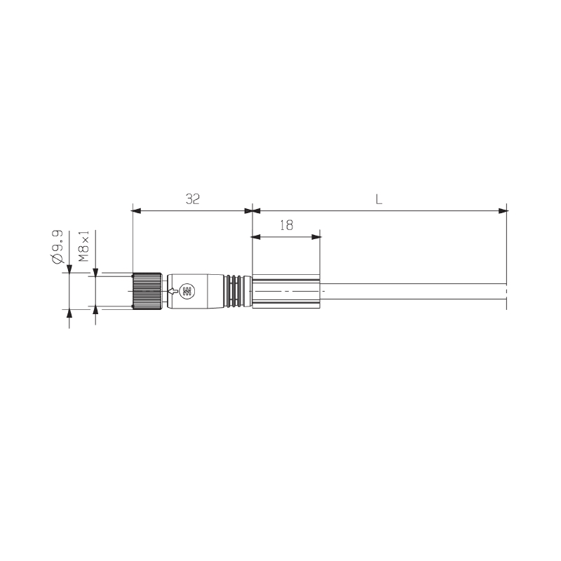 Anordnung der Kabelzuführung, feldseitig - gerade