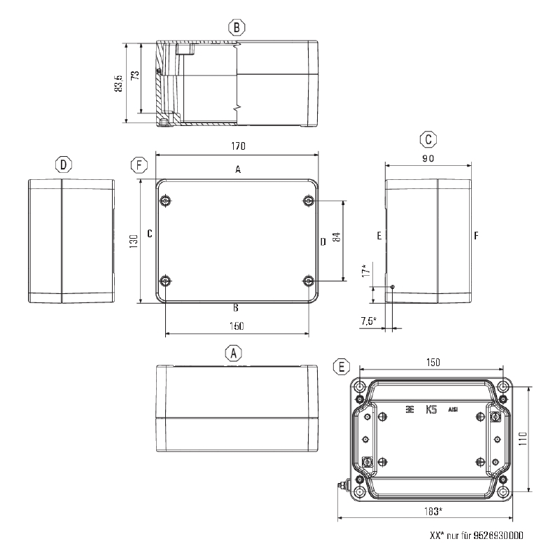 Breite - 170 mm