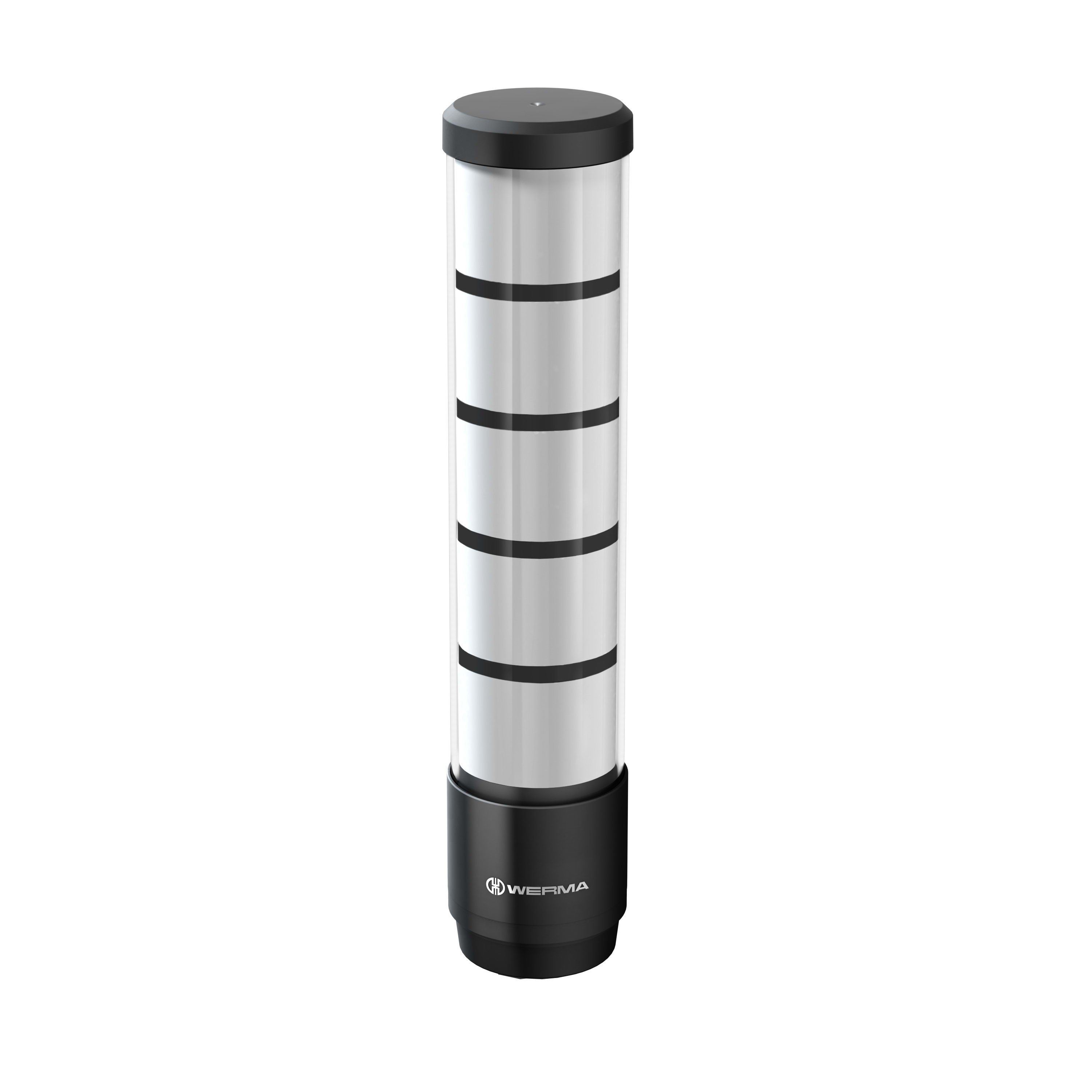 Torre di segnalazione preconfigurata dal design moderno e dalla visibilità ottimale. Illuminazione omogenea e visibilità ottimale dei segnali illuminati. Il grado di protezione IP66/IP69K consente l'utilizzo in un'ampia gamma di ambienti. Colonna di segnalazione a 5 livelli in bianco/blu/verde/giallo/rosso. Cicalino a 2 toni fino a 90 dB. Variante di montaggio a pavimento/tubo con collegamento al cavo.