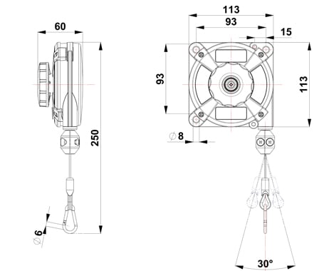 Bilanciatore a molla per gru, marca ZECA S.P.A., modello ZEC622 - BILANCIATORE 2-3 KG FUNE PET