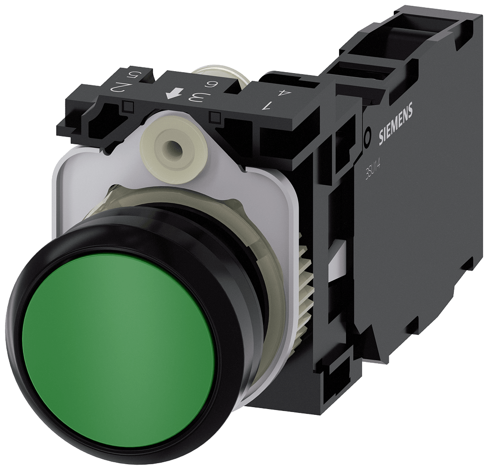 SIEMENS - SIE3SU11000AB401FA0 PULS. MOMENT.PLAST.VERDE 1NO+1NC VITE - 3SU11000AB401FA0