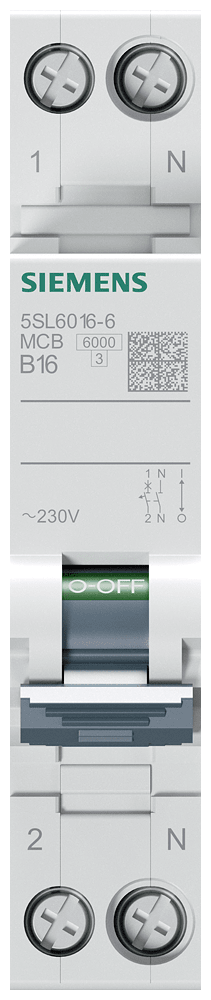 interruttore magnetotermico 230 V, 6 kA, 1+N poli /1UM, B16 Interruttore magnetotermico SENTRON 5SL per la protezione da cortocircuito e sovraccarico sicura per applicazioni standard in edifici residenziali e funzionali. Gli interruttori magnetotermici 5SL sono disponibili in esecuzione a 1, 2, 3, 4 poli nonché a 1 polo +N e a 3 poli +N nonché in ulteriori tipi speciali. I numerosi accessori, come ad es. i blocchetti di contatti ausiliari, consentono una varietà di ampliamenti funzionali. Semplicemente sicuri con gli apparecchi di protezione di SENTRON.