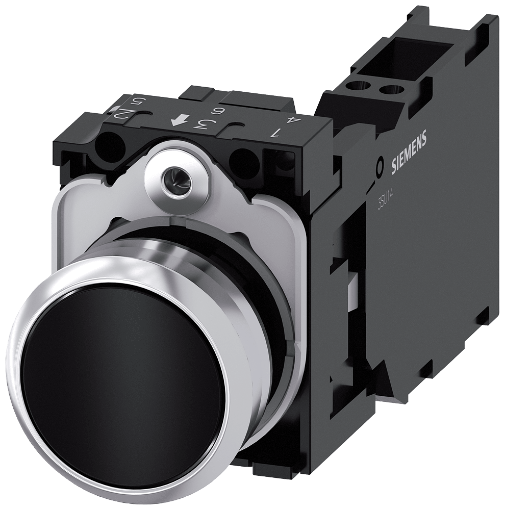 SIEMENS - SIE3SU11500AB103FA0 PULS.PIATTO MOMENT.MET.NERO 1NO+1NC MOLL - 3SU11500AB103FA0