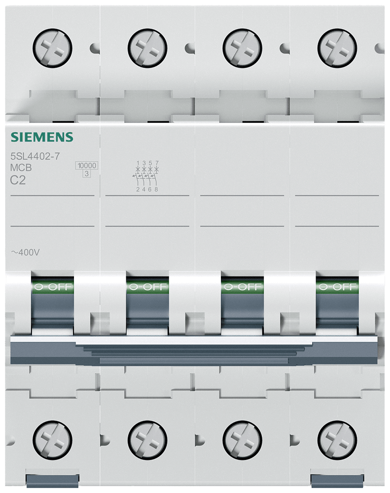Interruttore magnetotermico 400V 10 kA, a 4 poli, C, 2 A Interruttore magnetotermico SENTRON 5SL per la protezione da cortocircuito e sovraccarico sicura per applicazioni standard in edifici residenziali e funzionali. Montaggio e smontaggio dellapparecchio senza attrezzi. Semplice cablaggio dellalimentazione mediante la sbarra collettrice posteriore. Gli interruttori magnetotermici 5SL sono disponibili in esecuzione a 1, 2, 3, 4 poli nonché a 1 polo +N e a 3 poli +N nonché in ulteriori tipi speciali. I numerosi accessori, come ad es. i blocchetti di contatti ausiliari, consentono una varietà di ampliamenti funzionali. Semplicemente sicuri con gli apparecchi di protezione di SENTRON.