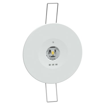Spotled ad incasso di illuminazione di emergenza 1.5h per vie di esodo La sorgente di questo dispositivo è un LED. Ha un'autonomia di 1,5 ore e 220 lm luminosi per 1 ora. È dotato di controllo remoto con alimentazione permanente e non permanente. Vieneutilizzato in condizioni di emergenza. Il tempo di carica di questo dispositivo è di 12 ore. È dotato di un collegamento a 3 fili. Dispone di un LED locale che indica il collegamento per la ricarica. Versione Teatro con flusso luminoso al 50% con selettore interno La sua tensione operativa Ue di 230VCA con 50/60Hz. Il consumo energetico è di 4,9 VA di rete e 3 W di batteria interna. Questo dispositivo consente il montaggio a controsoffitto incassato. Le dimensioni sono (L) 90 mm x (A) 90 mm x (P) 32 mm. Pesa 260 g. Il colore di questo dispositivo è bianco. È in policarbonato. La temperatura di funzionamento è compresa tra 0 e +40°C. Raggiunge i gradi di protezione IP20, IP42 e IK04. Exiway smartbeam ha un impatto estetico molto basso. Batteria LiFePO4, con una durata prevista fino a 8 anni. Riduzione del numero di elementi fissi necessari. Conforme alle normative europee e facile installazione senza accessori. Questo dispositivo è conforme agli standard CE ed ENEC.