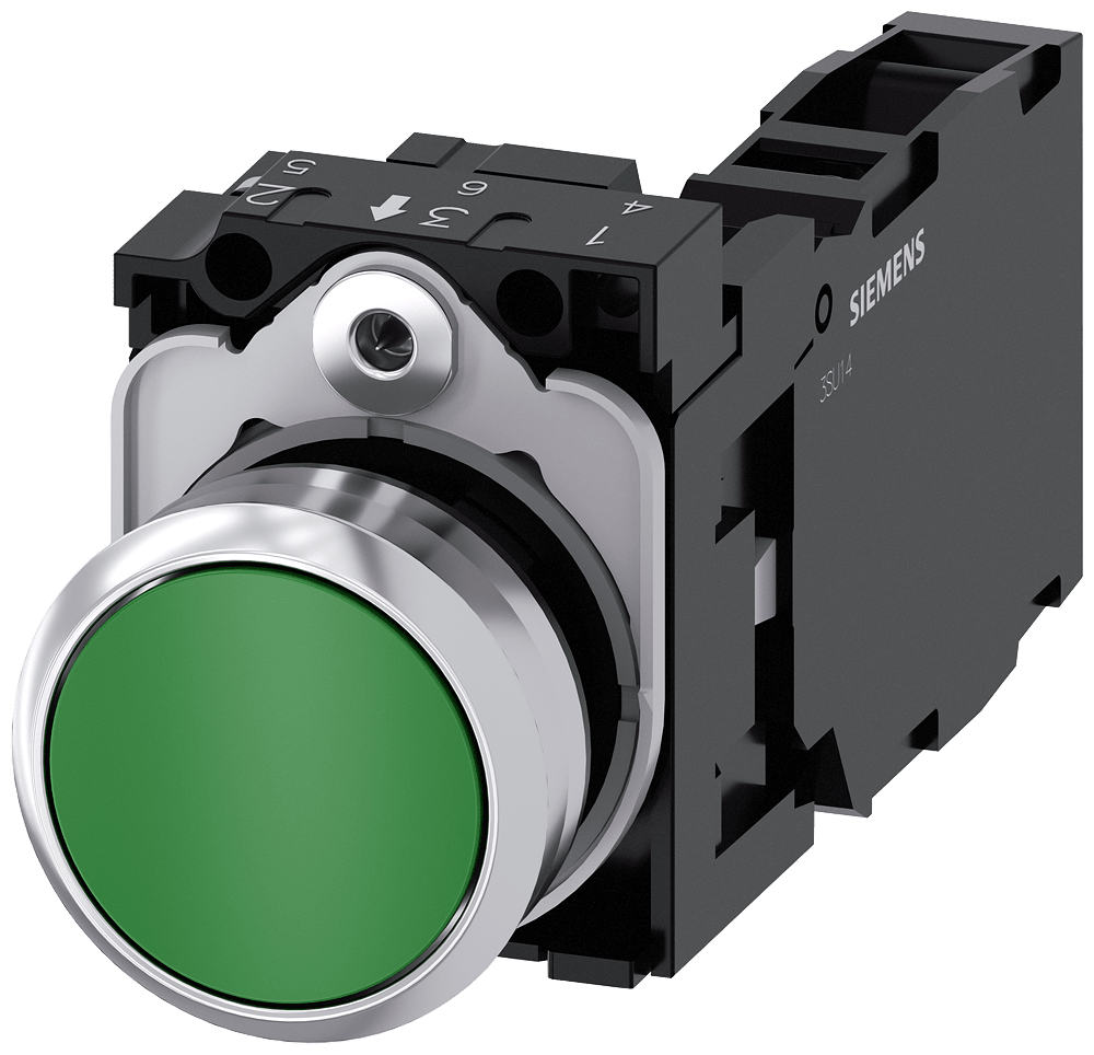 SIEMENS - SIE3SU11500AB401FA0 PULS.PIATTO MOMENT.MET.VERDE 1NO+1NC VIT - 3SU11500AB401FA0