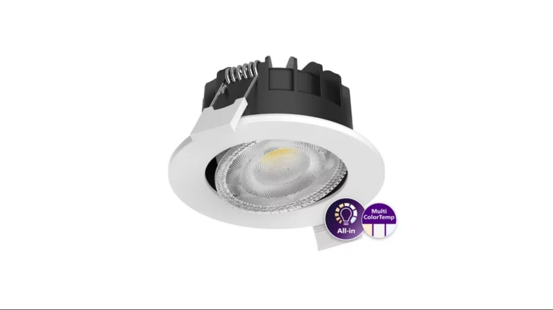 Adjustable, Metallo-Plastica, Bianco, Unità di alimentazione (On/Off), All-in, Multi Color Temperature, 550 lm, 6 W, 91 lm/W, 2700 K, 3000 K, 4000 K, (IEC3000K, 0.44, 0.403) 5SDCM, Angolo del fascio 60°, Trasparente, Policarbonato, IP20/65 | Protetto contro le dita; Protetto contro la penetrazione della polvere, a prova di getto, IK03 | 0,35 J rinforzato, Classe di isolamento II, Connettore a pressione 3 poli