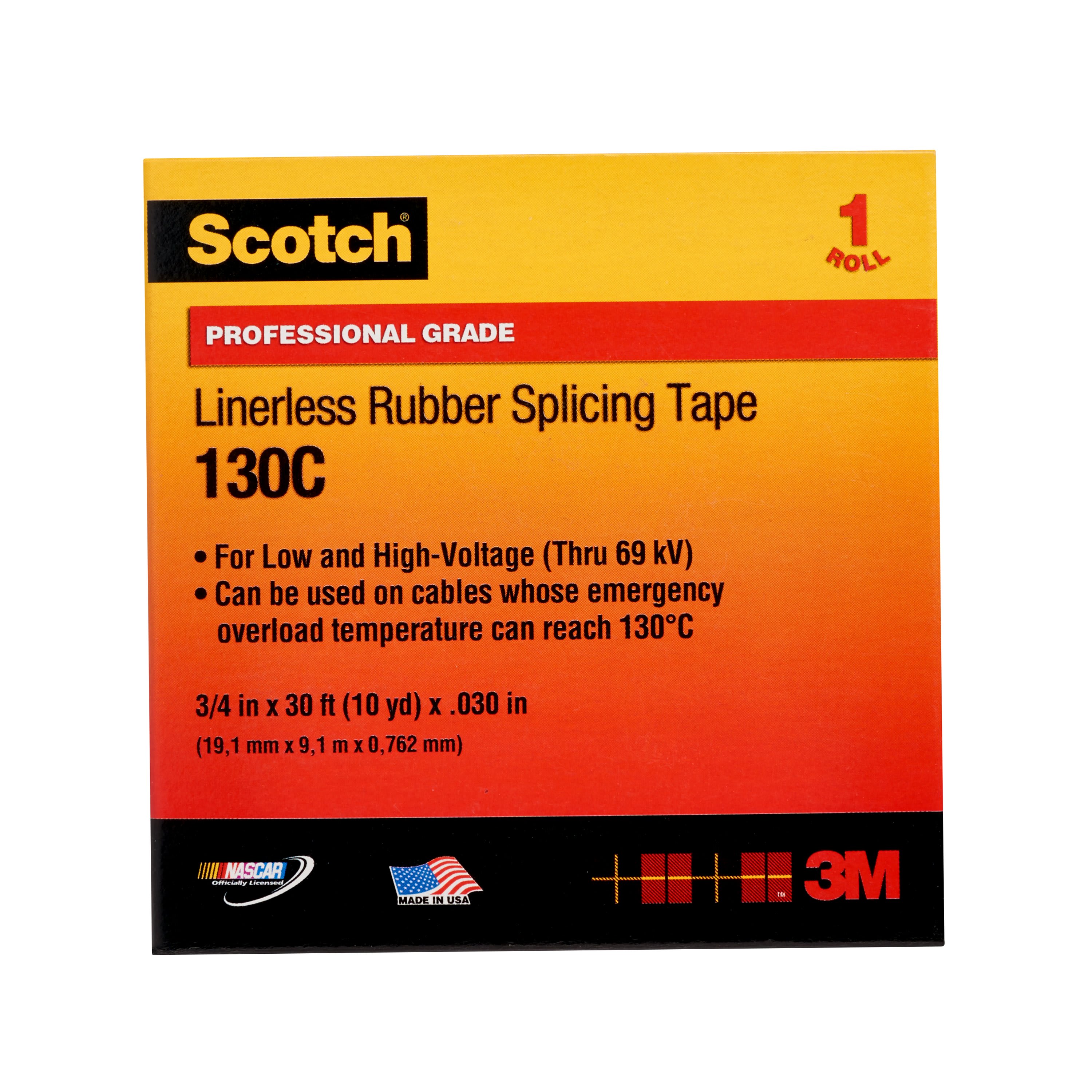 Nastro per giunzioni in gomma Scotch® 130C, 38 mm x 9,1 m, 12 per confezione 'Scotch® 130C nastro in gomma è ideale per diverse applicazioni in cui sono richieste proprietà di tenuta. Sono incluse la sigillatura di fascette, la chiusura di guarnizioni, l'isolamento di giunzioni di lamelle, accumulo di rivestimento e la costruzione di guaine ausiliarie.