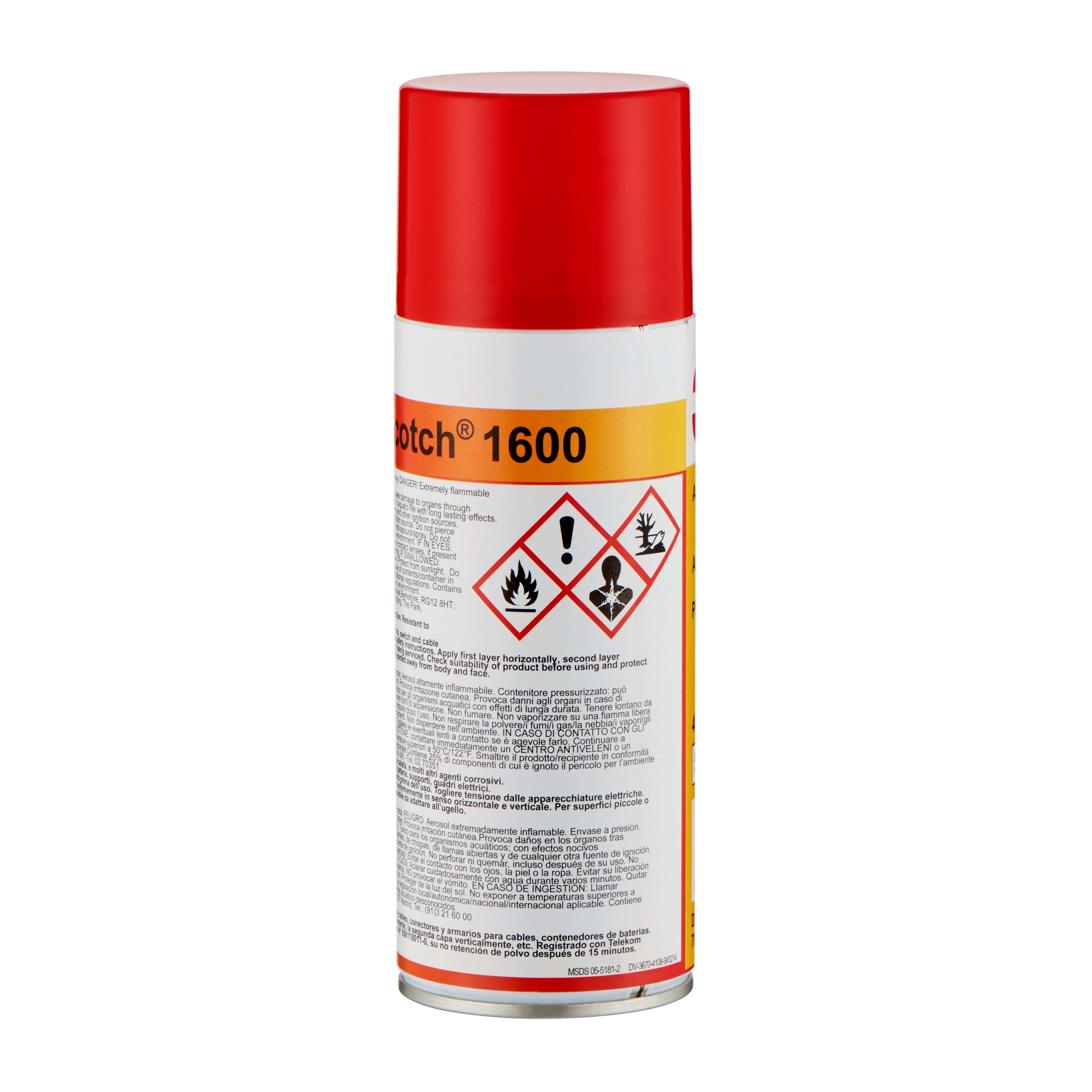 Spray Anticorrosione Scotch® 1600 Scotch® 1600 offre una protezione anticorrosione estremamente efficace. La sua base gomma-asfalto forma un rivestimento denso e resistente all'usura che protegge da umidità, acqua salata, tutti supporti corrosivi ed è resistente agli effetti degli impatti fisici.
