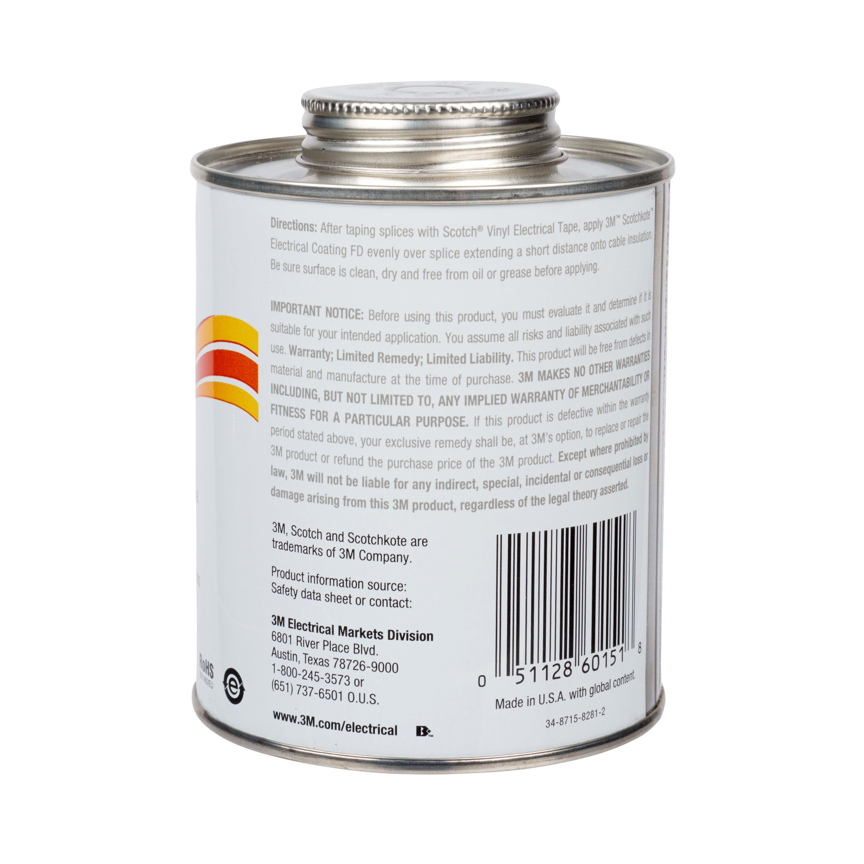 Scotchkote™ vernice protettiva 3M™ Scotchkote™ vernice protettiva per componenti elettrici. La vernice per componenti elettrici 3M™ Scotchkote™ è un sigillante ad asciugatura rapida e un agente di incollaggio consigliato per il rivestimento dei giunti con nastro elettrico in plastica. Scotchkote offre nastri in PVC con uno strato aggiuntivo di rivestimento flessibile resistente a olio, umidità e corrosione.