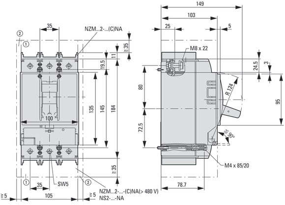EATON INDUSTRIES - Interruttore automatico 3p 8A NZMN2-S8-CNA SOLO MAGN 35KA UL/CSA - 103041