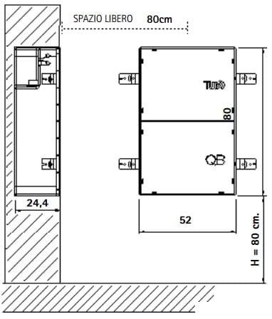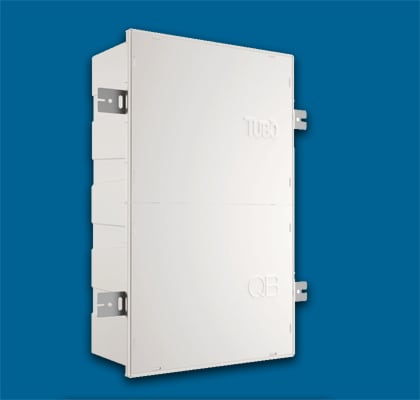 Cassa ad INCASSO in materiale plastico ad alta resistenza per centrale QB • Cassa ad incasso per centrale QB Q200, completa di sportello provvisorio per la muratura e predisposta per il collegamento elettrico.